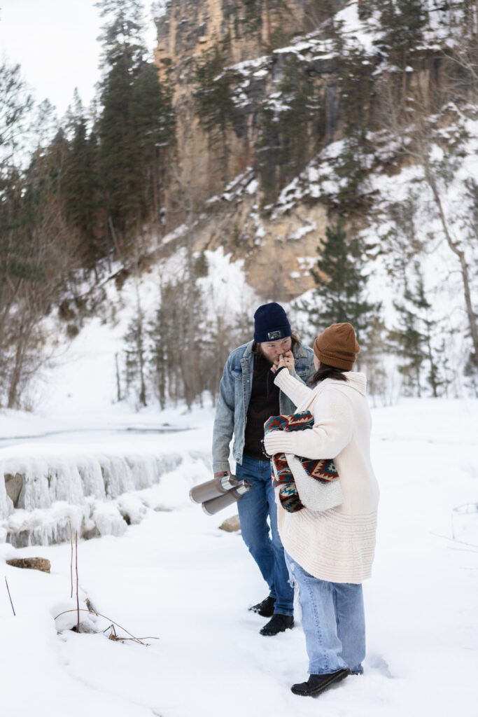 There’s something truly magical about Spearfish Canyon in the winter. Okay… to be honest, it’s pretty amazing all year. Yet, the dramatic cliffs, winding roads, and snow-covered trees create an atmosphere that feels like a scene from a romantic movie. It’s no wonder so many couples are drawn to the canyon for their winter engagement sessions.